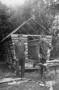 Charles John Cedergren and George Cedergren sawing wood, Stacy.